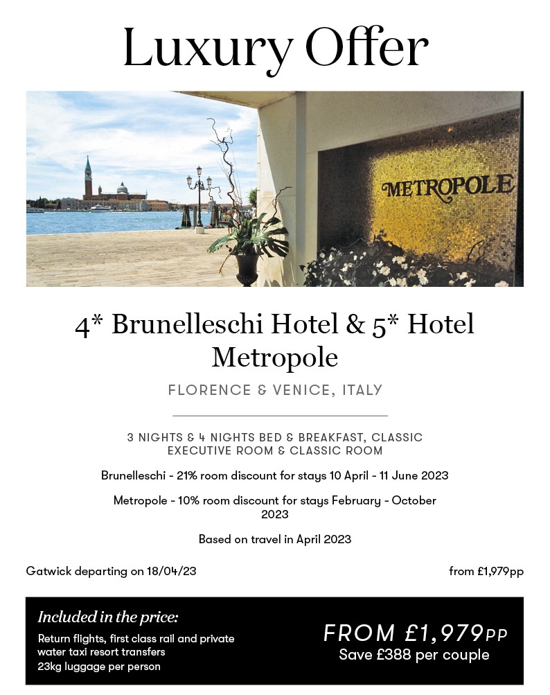 Save £388 per couple l First Class rail and Private Water taxi included